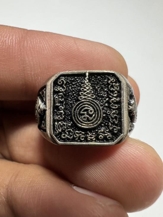 แหวนหลวงปู่เพิ่ม วัดป้อมแก้ว เนื้อเงิน รุ่นไตรมาสปี 2558 จังหวัดพระนครศรีอยุธยา ขนาดนิ้วชี้ผู้ชาย |