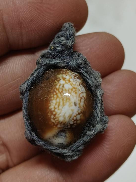 เบี้ยแก้ หุ้มจีวร ถักเชือก หลวงปู่ศิลา วัดโพธิ์ศรีสะอาด มีแผ่นเลขกำกับ ฝังตะกรุดทองเหลือง พร้อมใบคาถา ปี2567 |