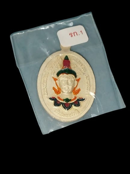 300... เศียรพ่อแก่ฤาษี พระอาจารย์อึ่ง วัดเซิงหวาย จ.กรุงเทพ หลังฝั่งเหรียญหลวงพ่อผลฯ เนื้อผงมวลสารเพ้นท์สี จารยัน พร้อมเลี่ยม |