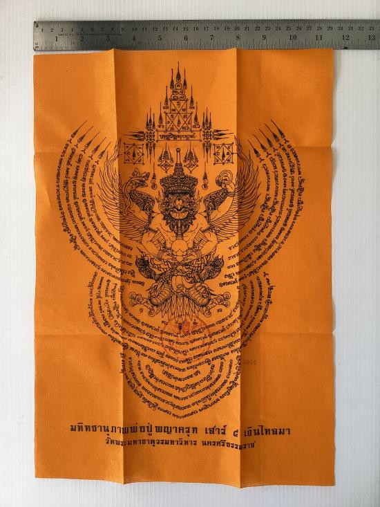 เคาะเดียวแดง 100 ( 2 ผืน ) ผ้ายันต์ พญาครุฑ รุ่น เศรษฐีเงินไหลมา วัดพระศรีมหาธาตุวรมหาวิหาร จ.นครศรีธรรมราช ขนาด A4 |