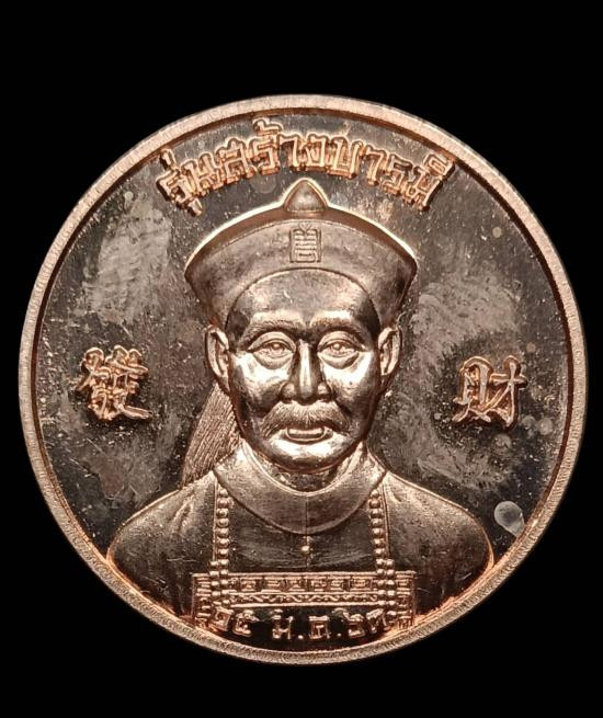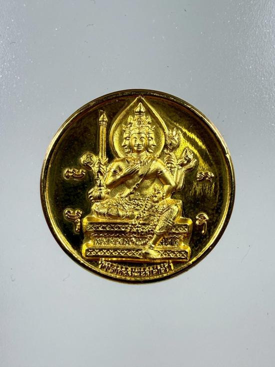 เหรียญเทพเจ้าไฉ่ซิงเอี้ย เทพเจ้าแห่งโชคลาภ เนื้อโลหะเคลือบทองคำ หลังตอกโค๊ดก้อนทอง รุ่นปลดหนี้ วัดเล่งเน่ยยี่ ปี 2545 พร้อมกล่องเดิมจากวัด ไม่ผ่านใช้ |