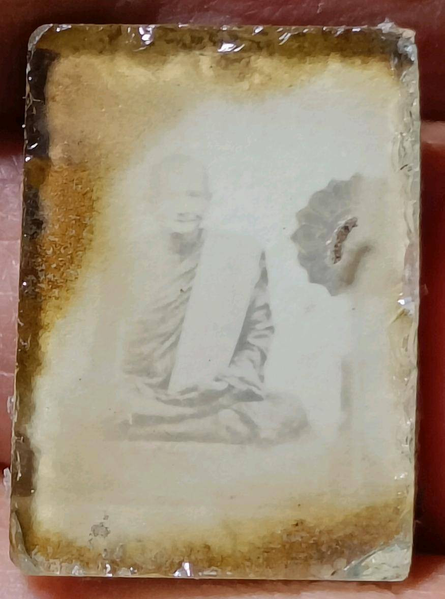 รูปถ่ายหนังไก่ หลวงพ่อทาบ วัดกระบกขึ้นผึ้ง หลังสีผึ้ง เลี่ยมเก่าเดิม เก่าเก็บ |