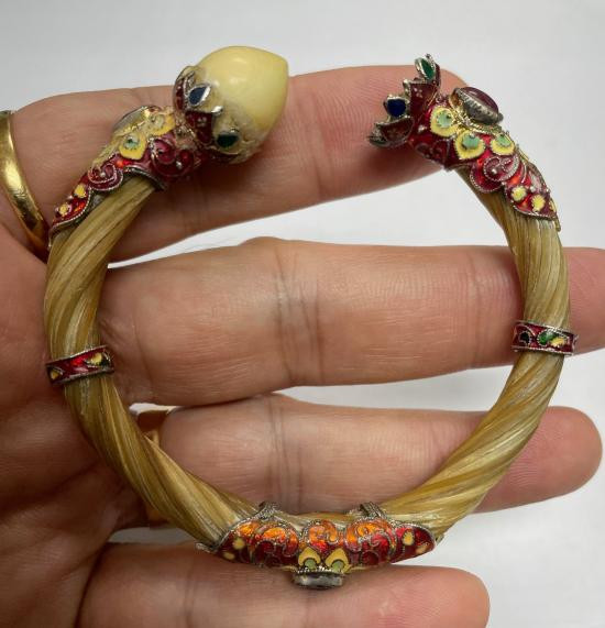 กำไลหางช้างจับเงินลงยา หัวงาช้าง ซ่อม1หัวหาย1หัวครับ |