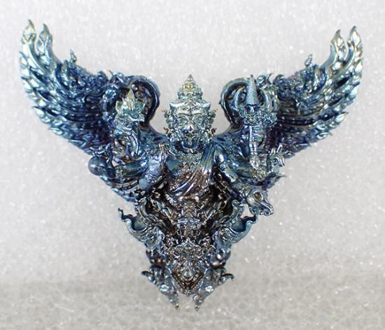 พญาครุฑ รุ่นมีโชคพันล้าน หลวงพ่อโชคชัย วัดน้ำดิบ เนื้อมหาชนวนชุบทองลงยากายน้ำเงิน สร้าง 80 องค์ หมายเลข 31 |