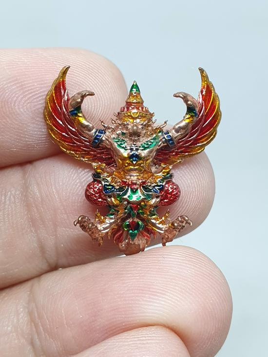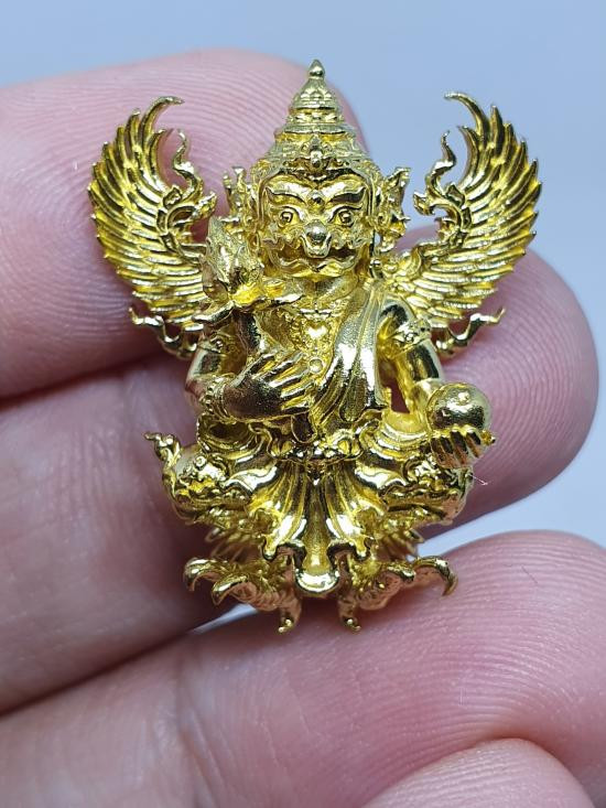 พญาครุฑ รุ่นเชิญธงเศรษฐี เนื้อสัมฤทธิ์ ชุบ 3k วัดครุฑธาราม จ.พระนครศรีอยุธยา (ซีลเดิมยังไม่แกะ) |