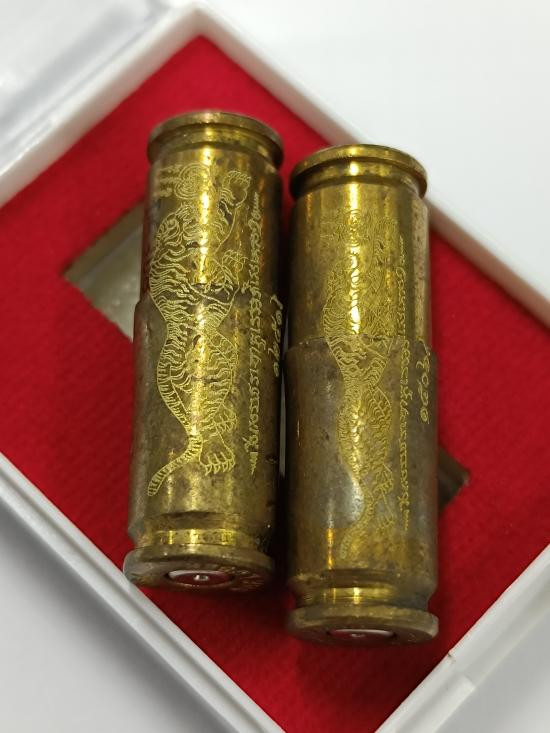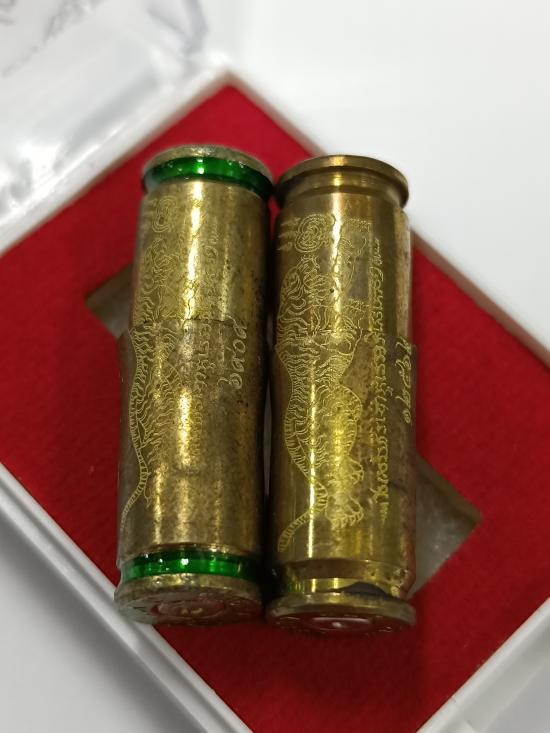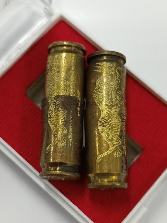 ตะกรุดปลอกลูกปืน รุ่น พยัคฆ์สยบไพรี รวย 100 ปี หลวงพ่อพัฒน์ วัดห้วยด้วน (ขนาดความยาว 3.5 ซ.ม.) หมายเลข 12528+12577 |