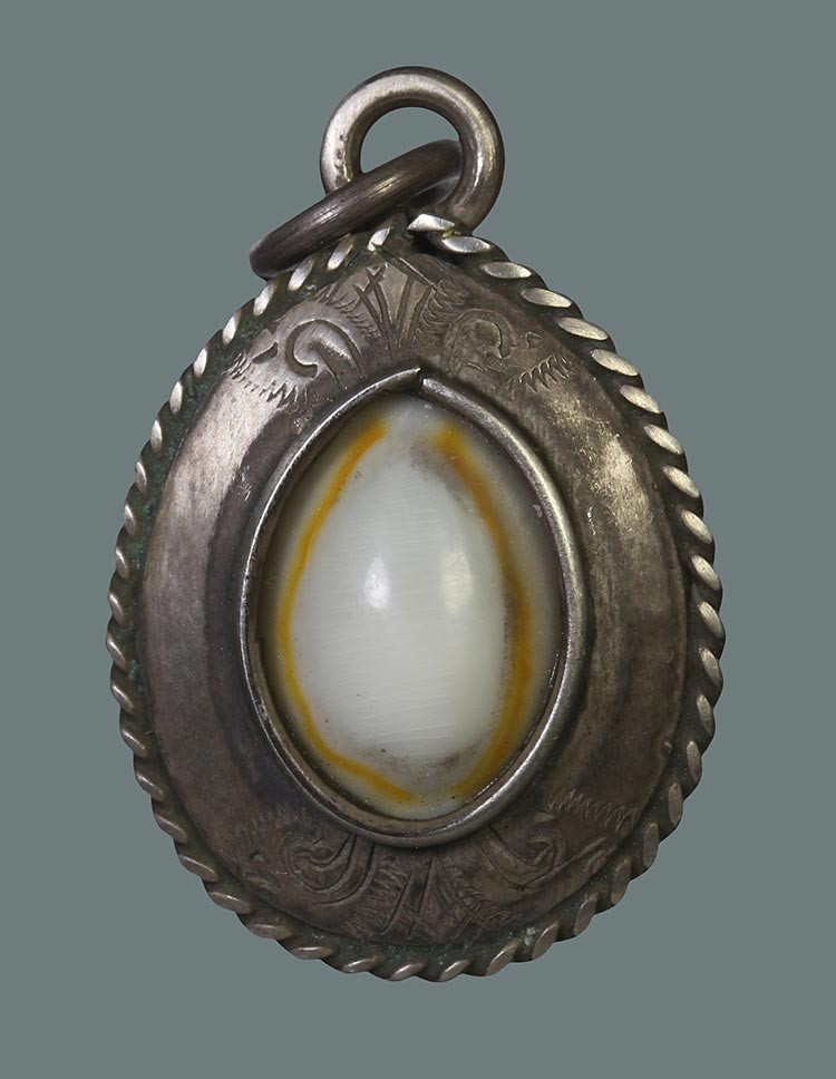 วัดใจ**เครื่องราง เบี้ยแก้ เลี่ยมกรอบเงินแกะลายเก่า ปรอทวิ่งอยู่....ตามสภาพครับ |