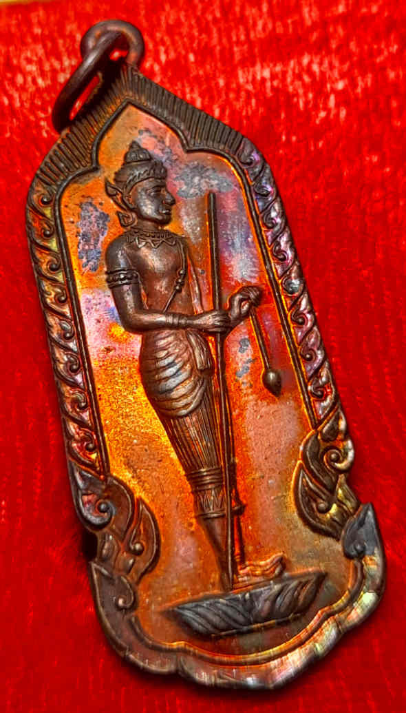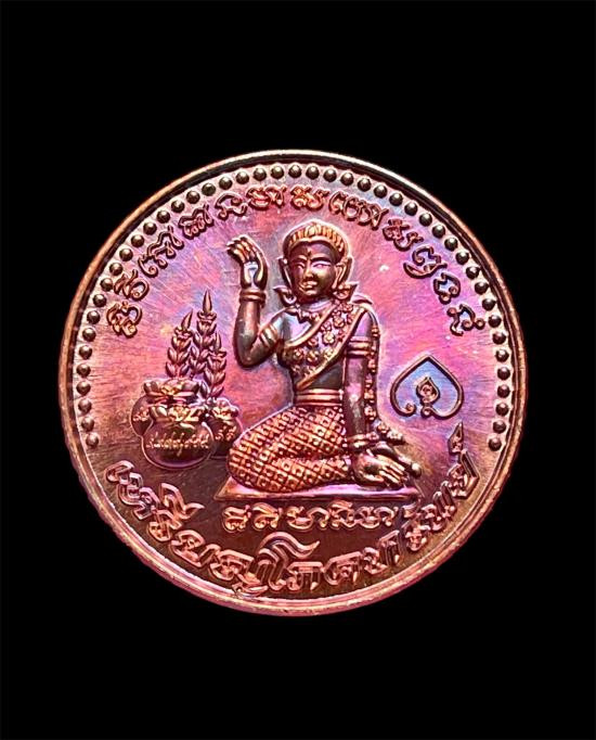เหรียญโภคทรัพย์ "นางกวักหลังหนุมาน" หลวงพ่อวิชัย วัดหัวเด่น "เนื้อทองแดงผิวไฟ" เลขสวย แดงๆ รุ้งๆ |