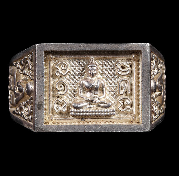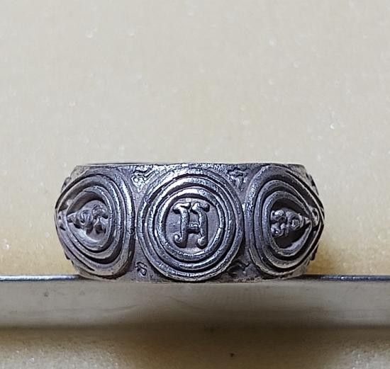 หลวงปู่กาหลง เขี้ยวแก้ว แหวนนารายณ์ตรึงไตรภพ รุ่นแรก (เนื้อเงินพดด้วง) (เส้นผ่าศูนย์ของวงในแหวน2.0)พร้อมซองใบคาถาแหวน |