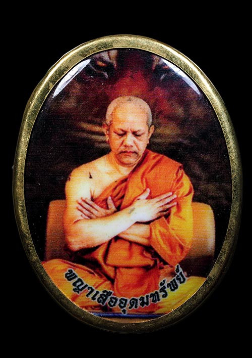 มาแรง 1ใน 10 ล็อกเก็ตโบราณ รุ่นพญาเสืออุดมทรัพย์ พระอาจารย์ประสูติ (หลวงพ่อประสูติ) วัดในเตา จ.ตรัง ฉากซีเปีย ขอบทองฟันปลา เสือเล็ก อุดมวลสาร ติดจีวร เกศา งาช้าง เลขเสวยNO.9 (ที่สุดของเลขมหามงคล) |