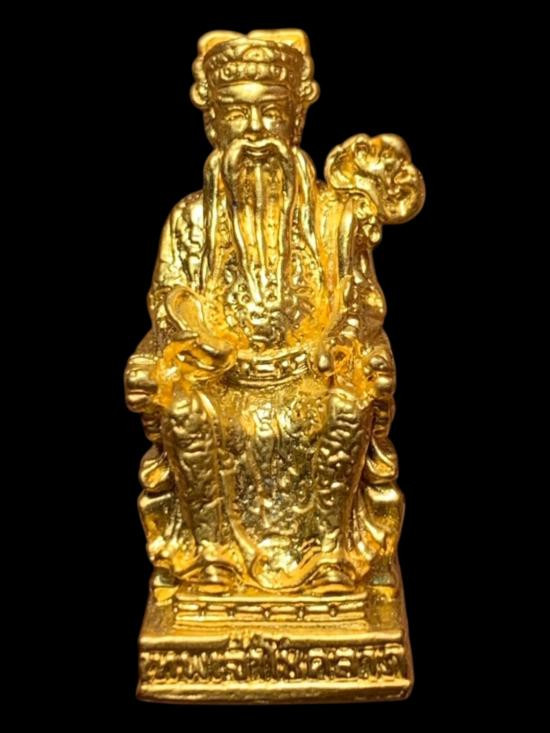 รูปเหมือนหล่อ เทพเจ้าโชคลาภ วัดเล่งเน่ยยี่ ใต้ฐานอุดผง |