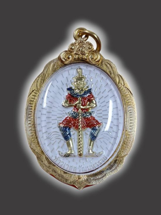 เหรียญท้าวเวสสุวรรณ รุ่นนั่งบัลลังก์ประทานพร หลวงพี่เลี้ยง วัดจอมเกษ เนื้อเงินลงยาทรงเครื่องหน้ากากทองคำแท้ เลี่ยมตลับทองอิตาลีพร้อมสร้อยทองอิตาลี ตอกโค๊ดพิเศษเลข 333 |