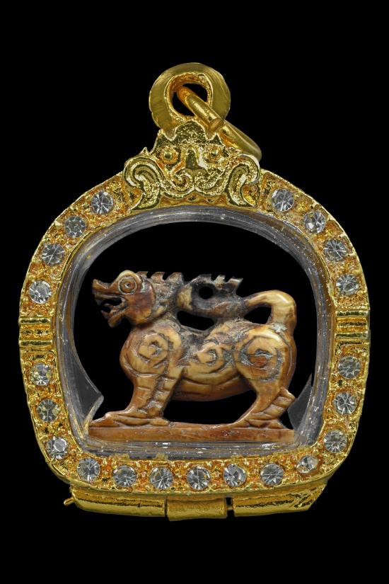 สิงห์สามขวัญ หลวงพ่อกัน วัดเขาแก้ว(ยุคต้น) พร้อมเลี่ยมกรอบชุบทอง+ บัตรรับรอง G-PRA |