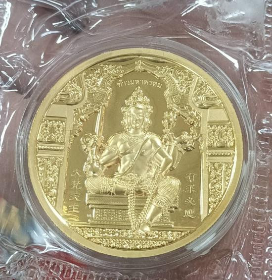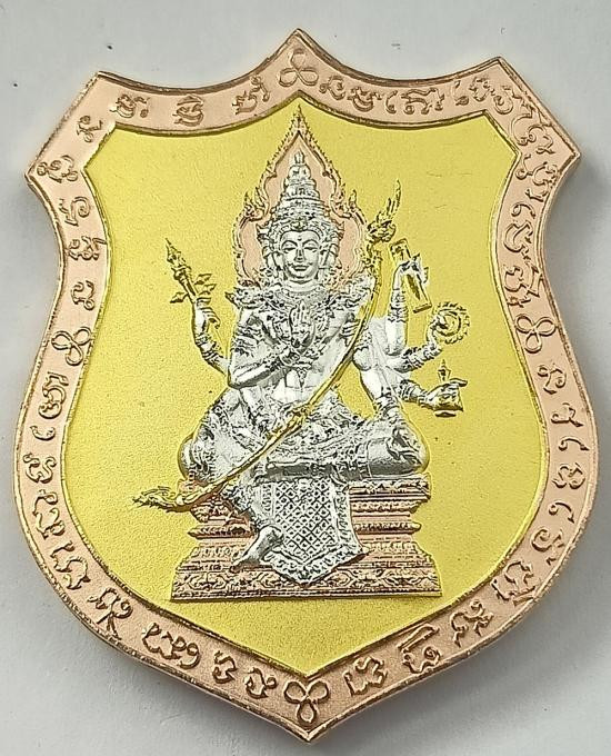 เหรียญท้าวมหาพรหม หลวงพ่อชำนาญ ปลุกเสก เนื้อทองแดง ชุบทอง สร้าง 699 เหรียญ พร้อมใบเซอร์ ขนาด 7 cm |