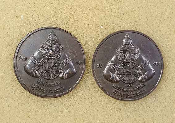 เหรียญราหูอมจันทร์ พระอาจารย์อุเทน วัดท่ากระบือ สมุทรสาคร ปี 2548 2 เหรียญ |