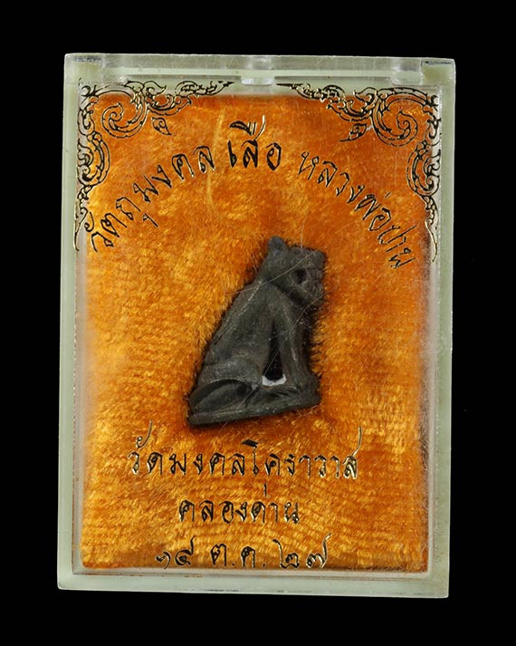 สิงห์มหาอำนาจ รุ่นแรก เนื้อไม้มงคล ใต้ฐานหลวงปู่จารยันต์ เบอร์ ๖๐ ปี 2559 หลวงปู่สมชาย วัดคงคา จ.กาญจนบุรี พร้อมซองรูปเดิมจากวัด |