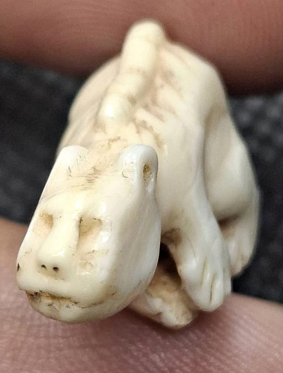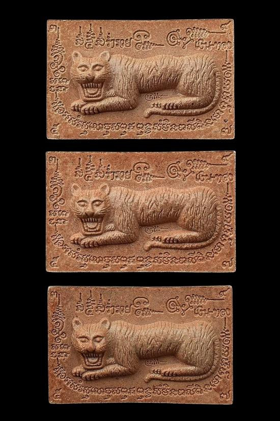 ชุด 3 องค์...เสือนอนกินทรัพย์สินพูนทวี เนื้อผงว่านยาคลุกน้ำมันเสือ หลังโรยขนเสือ + เม็ดข้าวนารอด + ก้านธูปเสก ปี 2551 หลวงปู่นิเวศน์ วัดทุ่งกระเจ็ด จ.สุพรรณบุรี พร้อมซองรูปใบฝอยเดิมจากวัด |