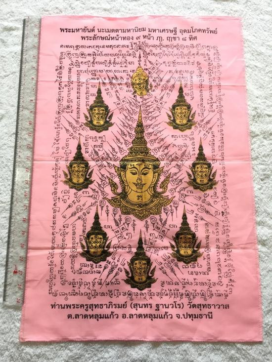 เคาะเดียว 130 ผ้ายันต์พระลักษณ์หน้าทอง ๙ หน้า ฤาชา ๘ ทิศ พระมหายันต์ นะเมตตามหานิยม มหาเศรษฐี อุดมโภคทรัพย์ หลวงพ่อสุนทร วัดสุทธาวาส จ.ปทุมธานี |