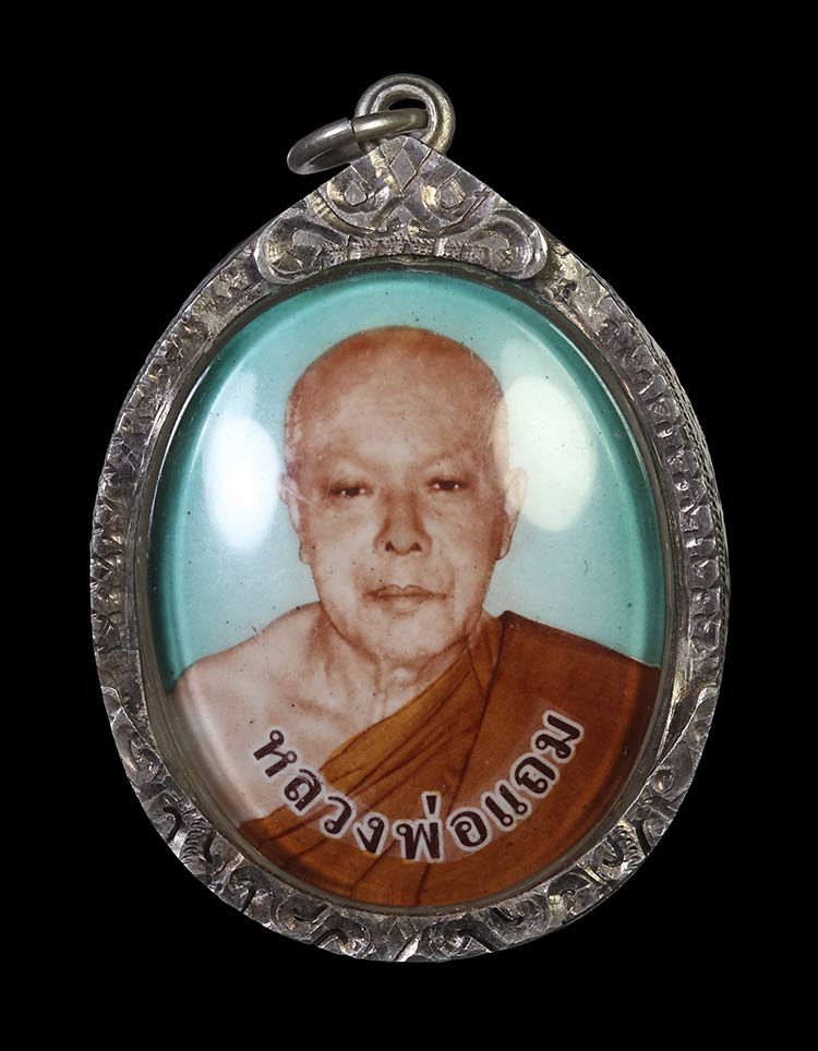 วัดใจ**เครื่องราง ล็อกเก็ตครึ่งองค์*{ รุ่นแรก }*ฉากเขียวใหญ่ หลังกะไหล่ทอง หลวงพ่อแถม วัดช้างแทงกระจาด จ.เพชรบุรี ปี2553*{ ข้างในบรรจุเกศา+มีรอยจาร }*เลี่ยมกรอบเงินสั่งทำ....สวยครับ |