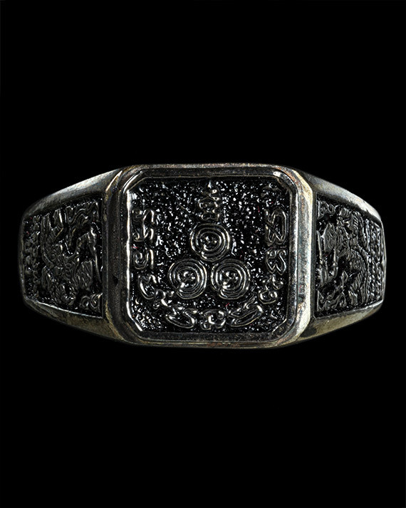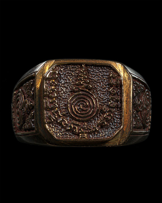 แหวนปลอกมีด *** เนื้อนวะโลหะ**ท่านขุนพันธ์ฯเป็นเจ้าพิธีจัดสร้าง ตอกโค๊ด ด้านในเป็นปิดตาพังพกาฬ |