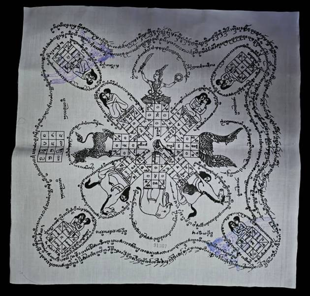 เคาะเดียว 330 ผ้ายันต์**เขียนมือ เพ้นท์สี ยันต์เสน่ห์สายล้านนา ผืนใหญ่ขนาด23นิ้ว |