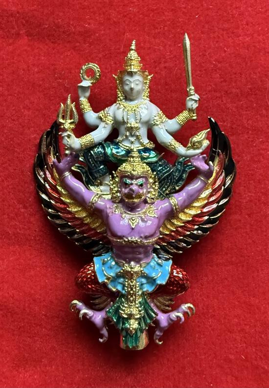 พญาครุฑ รุ่นมีโชคพันล้าน หลวงพ่อโชคชัย วัดน้ำดิบ เนื้อมหาชนวนชุบ3kลงยากายม่วง สร้าง 80 องค์ หมายเลข 50 |