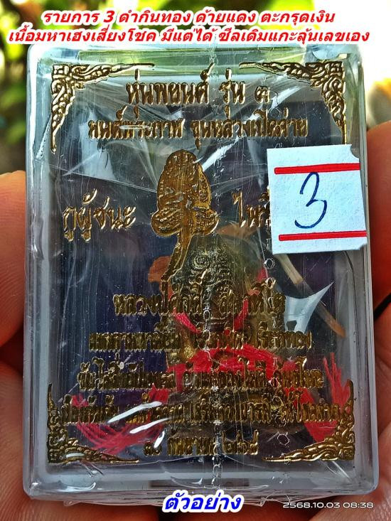 หุ่นพยนต์ รุ่น 3 กูผู้ชนะ ไพรีพินาศ หลวงปู่ศักดิ์ สมาหิโต รายการ 3 ดำกินทอง ด้ายแดง ตะกรุดเงิน เนื้อมหาเฮงเสี่ยงโชค มีแต่ได้ ซีลพลาสติกหุ้มกล่องเดิมแกะลุ้นเลขสวยเอง |