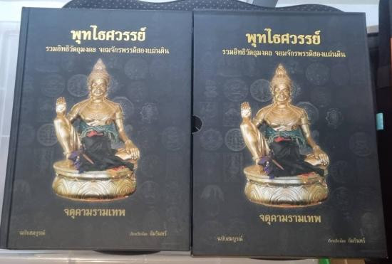 พุทไธศวรรย์ หนังสือรวมอิทธิวัตถุมงคลจอมจักรพรรดิสองแผ่นดิน จตุคามรามเทพ ฉบับสมบูรณื สภาพดี ปกแข็ง มีกล่องบรรจุขนาด 8.5 นิ้ว X 11.7 นิ้ว พิมพ์ปี2550 จำนวน400หน้า รวมรวมประวัติ วัตถุมงคล แยกรุ่น แยกพิม |
