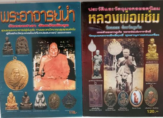 หนังสือประวัติและวัตถุมงคลยอดนิยมหลวงพ่อแช่มวัดฉลอง + หนังสือพระอาจารย์นำวัดดอนศาลา 2 เล่มเคาะเดียวค่ะ |