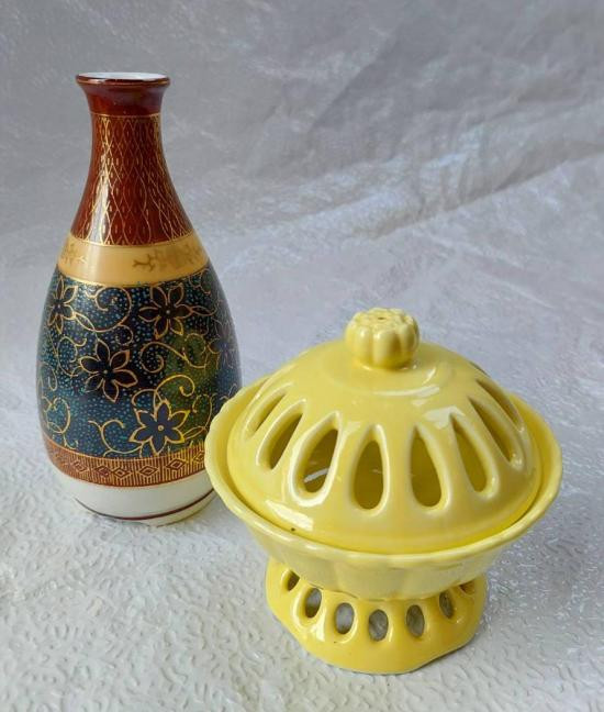 ฉากหลังสีทองขนาดเล็กลายผ้าไหม เป็นของสะสมจากญี่ปุ่น 2 ชิ้น |