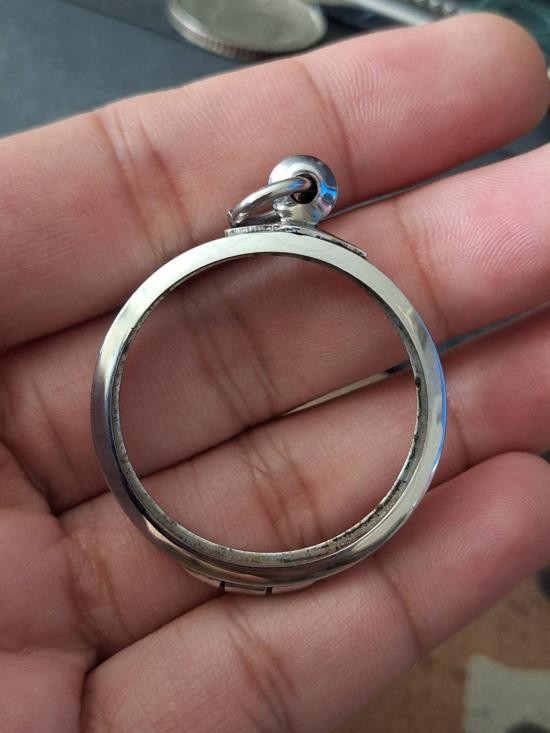 (เคาะเดียว) ตลับสแตนเลสมือสองอย่างดี ใส่หลวงพ่อพรหม พิมพ์เข่ากว้างหรือขนาดใกล้เคียง |