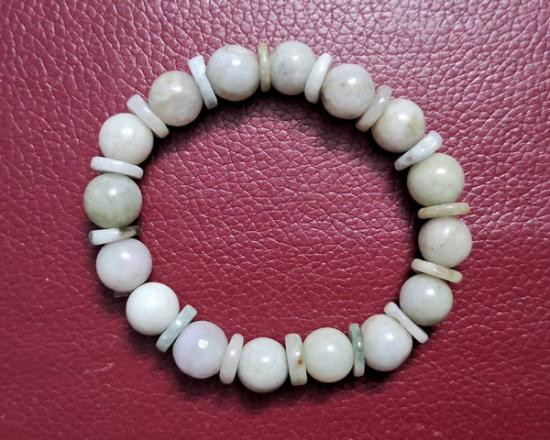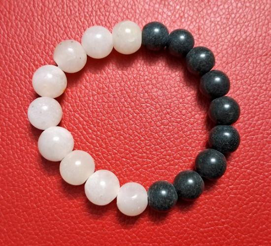 ประคำข้อมือหยกพม่าสีขาว+หยกดำจีนเรียกว่า หยกเนไฟรต์ (Nephrite) ขนาด 10-12 มิล ร้อยด้วยเอ็นยืด ขนาดฟรีไซด์ (กท.76) |
