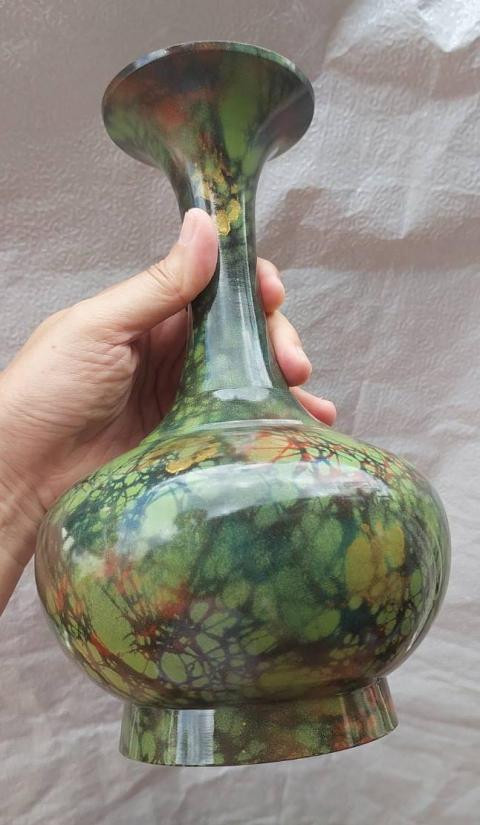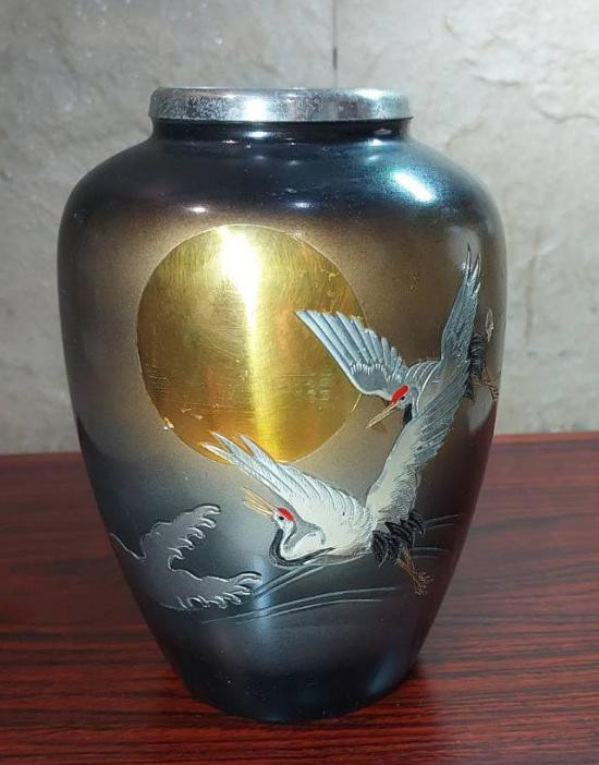 ***วัดใจ***แจกันเนื้อโลหะตอกลาย สีบรอนซ์-ดำ งานฝีมือของสะสม ปากกว้าง 2.5 นิ้ว สูง 7.5นิ้ว |
