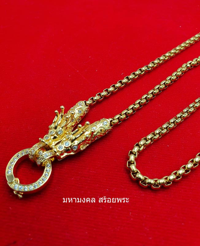 สร้อยเชือกร่ม แต่งด้วยงานทองเลเซอร์ หัวทองเลเซอร์ฝั่งพลอย สวยๆ ครับ ยาว 24 นิ้ว |