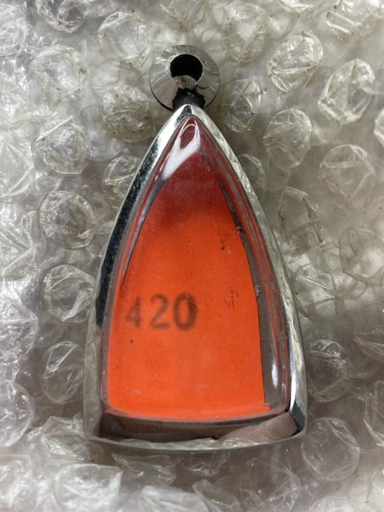 วัดใจ**เครื่องราง ผอบเนื้อกระไหล่เงินแกะลายใบใหญ่...ตามสภาพครับ |