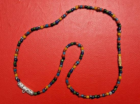 สร้อยคอลูกปัดทราวดี ลูกปัดโบราณสวยๆ ความยาว 24 นิ้ว สวมหัวได้หรือหมุนเกลียวทองเหลืองถอดออกก็ได้ สามารถห้อยพระได้ 1 องค์ (กท.21) |