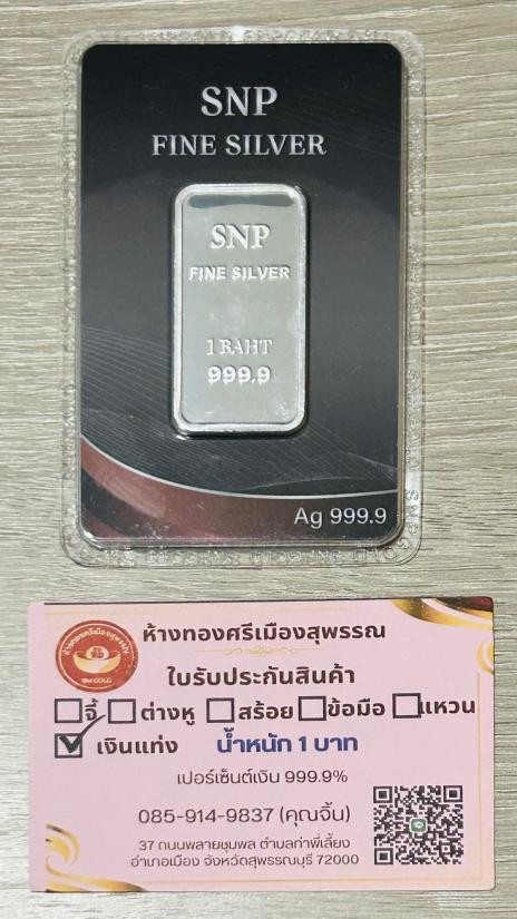 วัดใจ เงินแท่ง 999.9% ขนาด 1 บาท ร้านดัง snp พร้อมบัตรรับประกัน |