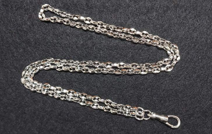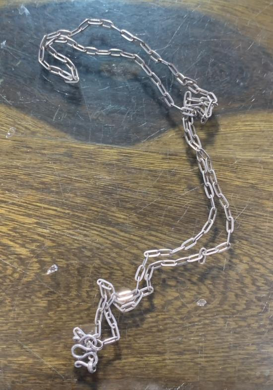 สร้อยเงินแท้ น้ำหนัก 4.95กรัม สภาพสมบูรณ์ เส้นสั้น สวมหัวไม่ได้ครับ |