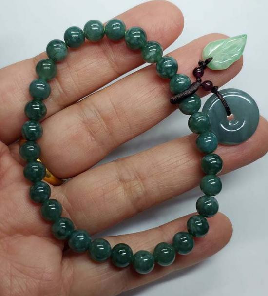 ***วัดใจ***สร้อยข้อมือ หยกจักรพรรดิ์ พร้อมจี้หยก เม็ด 6 มิล สวยๆ |