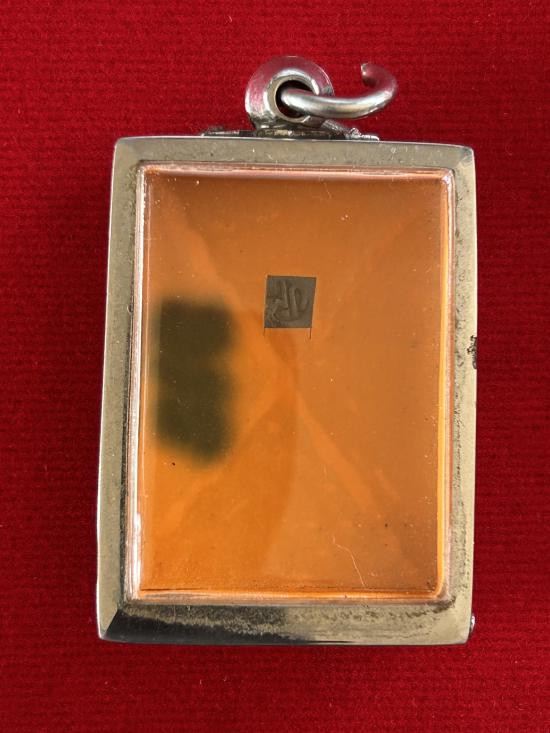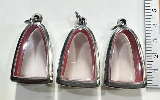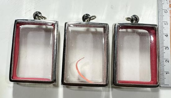 ตลับมือสองสแตนเลสทรงสี่เหลี่ยมใส่สมเด็จทั่วไปได้ 3 ใบแบบเปิดหน้า-หลังขนาด 4.5 x 3.5 ซม. |