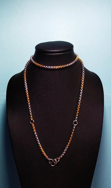 สร้อยสแตนเลสงานเลเซอร์ทอง ลายโซ่กล่องยาว 26 นื้ว พร้อมห่วงสปริงรังดุมสแตนเลสงานเลเซอร์ทอง |