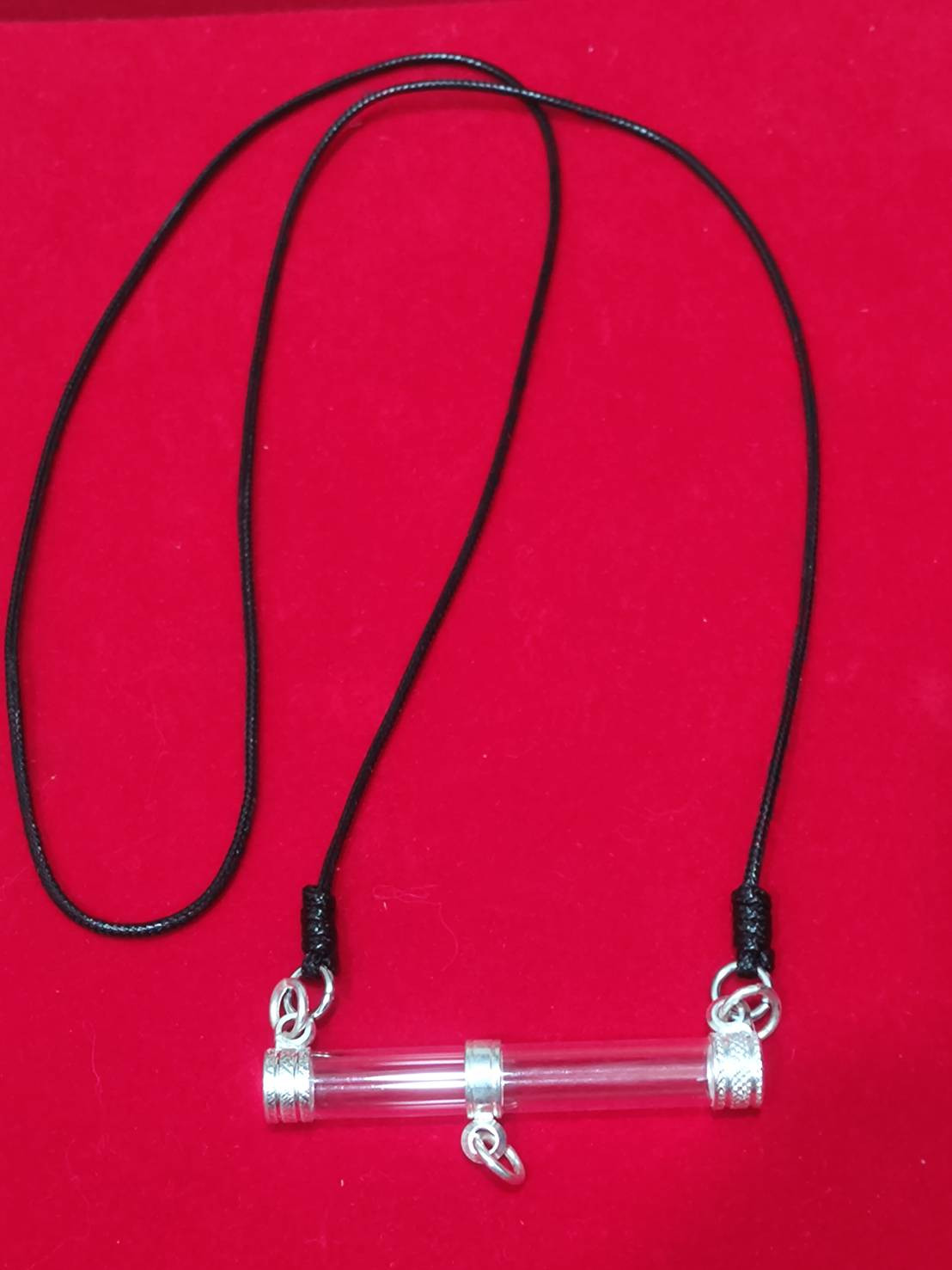 สร้อยเชื่อร่มยาวสวมหัวได้พร้อมหลอดตะกรุดแบบ 3 ห่วง ขนาดหลอด8มม.ยาว 6ซม. เคระเดียว |