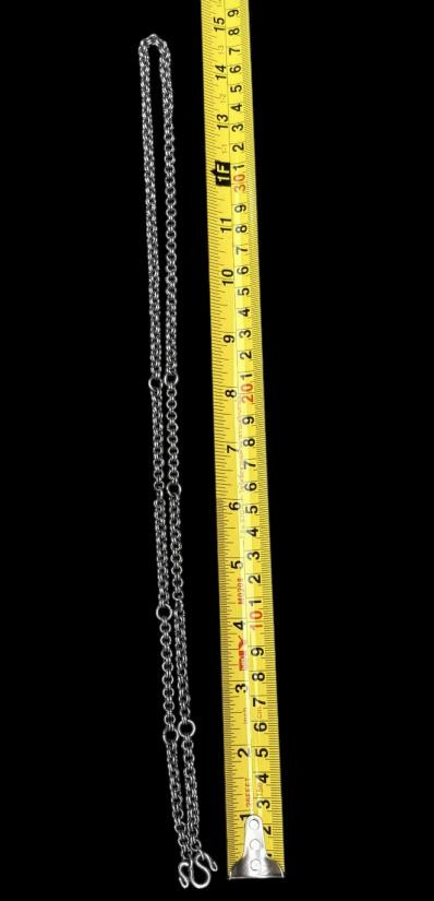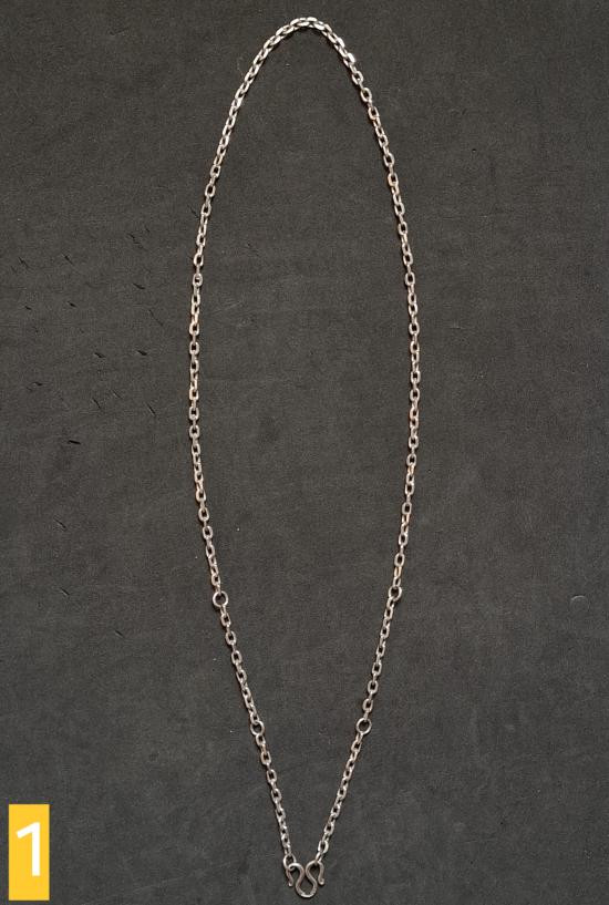 วัดใจ สร้อยเลสเก่าสภาพใช้ ตราลูกศร ห้อยพระได้5องค์ ยาว2ฟุตครับ |