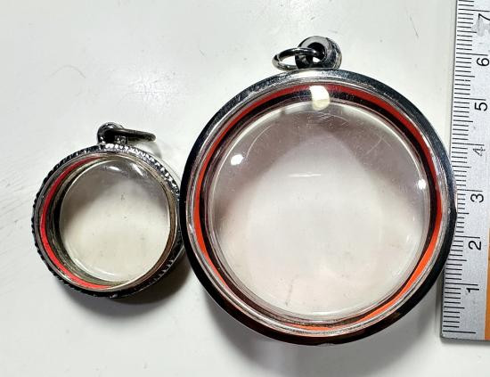 ตลับมือสองสแตนเลสทรงกลม 2 ใบแบบเปิดหน้า-หลังขนาด รัศมี 4.5 และ 2.5 ซม. |