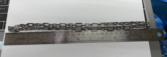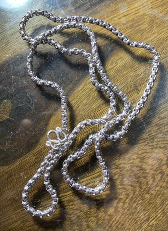 สร้อยสแตนเลสห้อยพระ 5 องค์ กว้างขนาด 8 มิล ยาวทั้งเส้นประมาณ 28 นิ้ว |