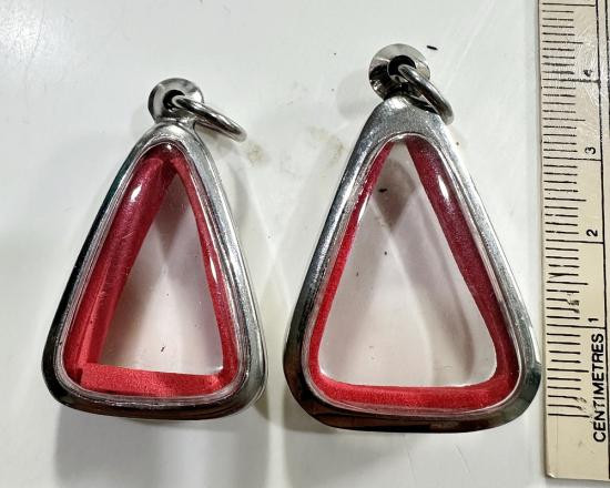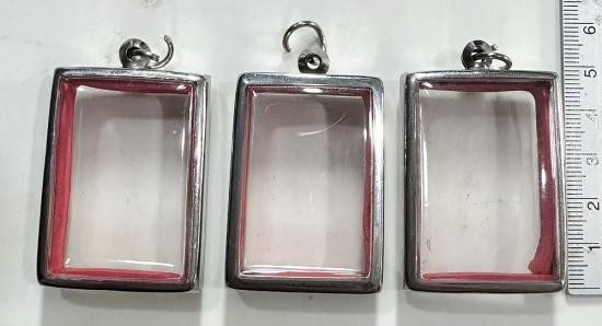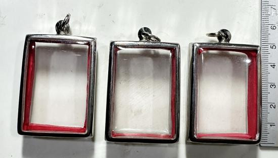 ตลับมือสองสแตนเลสทรงสี่เหลี่ยมใส่สมเด็จทั่วไปได้ 3 ใบแบบเปิดหน้า-หลังขนาด 4.5 x 3.5 ซม. |
