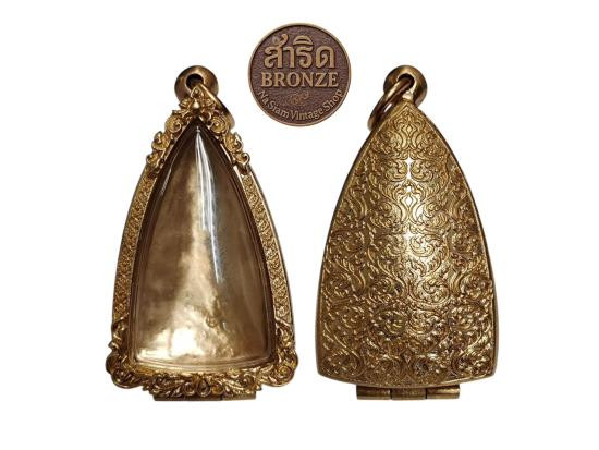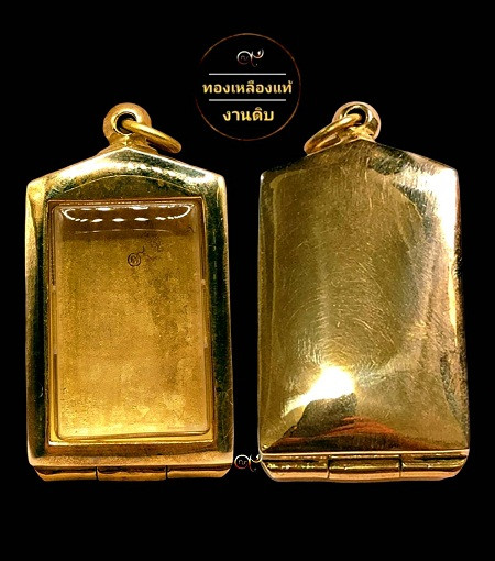 ตลับพระ สมเด็จเนื้อทองเหลืองแท้ หลังปิดลายพระพุทธรูป นูนต่ำ งานดิบ ไม่ชุบ |