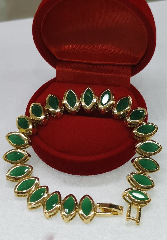 เทขาดทุน+ กำไลแขนมรกตทรงมาคียาว 7.นิ้ว งานจิวเวลลี่ชุบทองแท้ |