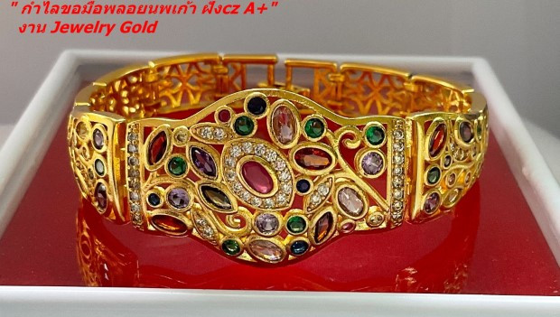 เทขาดทุน++ เทปีใหม่++กำไลข้อมือทับทิมยาว 7.นิ้ว งานจิวเวลลี่ชุบทองแท้ |