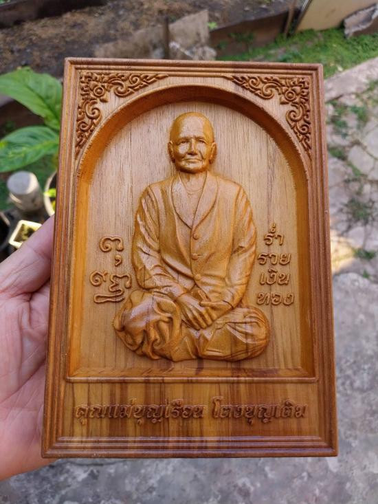ไม้สักแกะสลักมงคล คุณแม่บุญเรือน กว้าง14ซม.สูง20ซม.หนา2.5ซม.+ขาตั้ง เคาะแรกแดง |